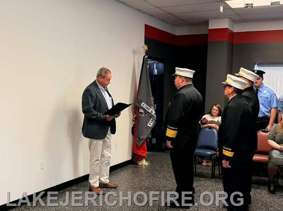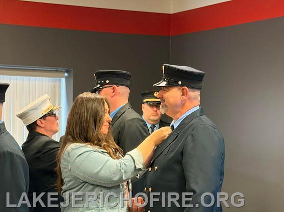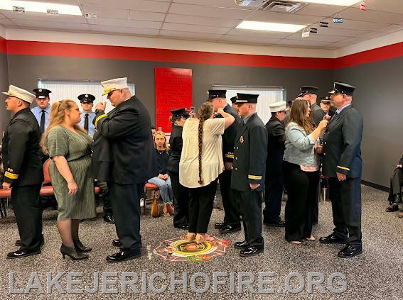 | Honoring leadership, commitment to service, and continuing to honor of the rich History of Fire Service tradition. The Lake Jericho Fire & Rescue Department family conducted their badge pinning ceremony recognizing the promotion of our Officers as well as re-affirming their oath of office commitment. The Oath and Badge pinning ceremony holds deep importance as a foundational tradition that mirrors their Mission, Vision and Core Values, symbolizing commitment and achievement. For both new and seasoned members, this ceremony symbolizes their ongoing commitment to the community and marks a monumental milestone where they receive their badge, symbolizing not only courage to respond to the call for help but a lifelong commitment to service and sacrifice they knowingly must make to successfully accomplish it.